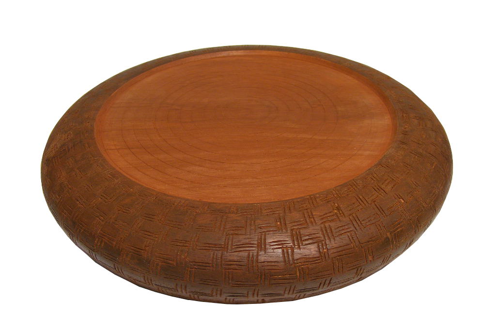 This Wooden Donut Bowl has a chunky rim reminiscent of a donut! The rim is carved with a basket motif.